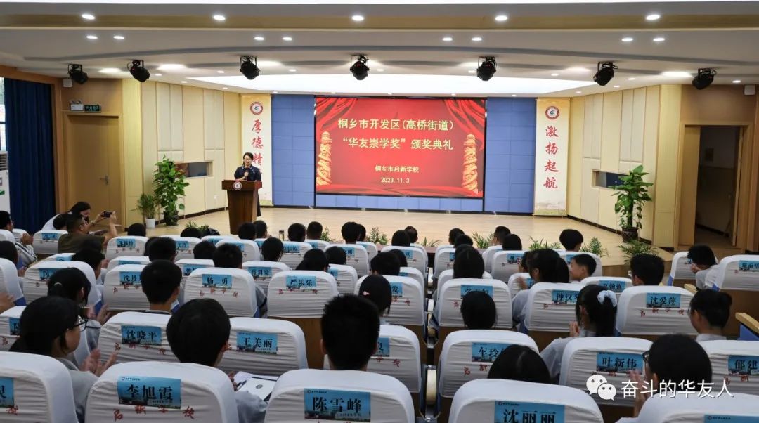 錦繡年華,友你同行;崇智尚德,學而致遠。近日,2023年桐鄉經濟開發區(高橋街道)“華友崇學獎”頒獎典禮在啟新學校報告廳舉行。