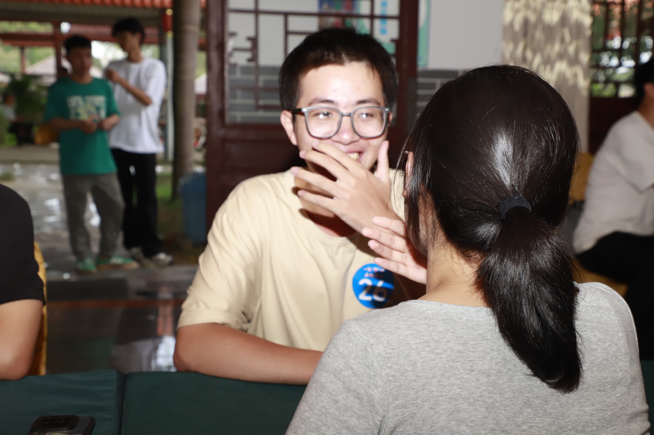 活動于下午3點正式開始,現場通過“盲盒配對”“大風吹”“緣分連連看”等趣味環節迅速破冰,青年朋友們逐漸放松身心、融入氛圍。隨后的“甜心心相‘運’”“心有靈犀一線牽”“愛的密碼”等甜蜜闖關游戲,進一步增進了彼此的了解與默契。