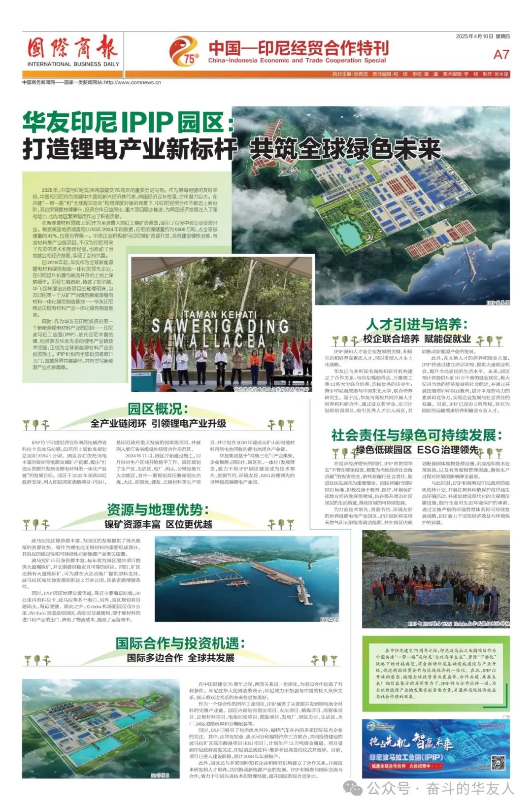 Special Issue of International Business Daily — Huayou Indonesia IPIP Park: Building a New Benchmark for Global Lithium Battery Industry and Jointly Creating a Green Future