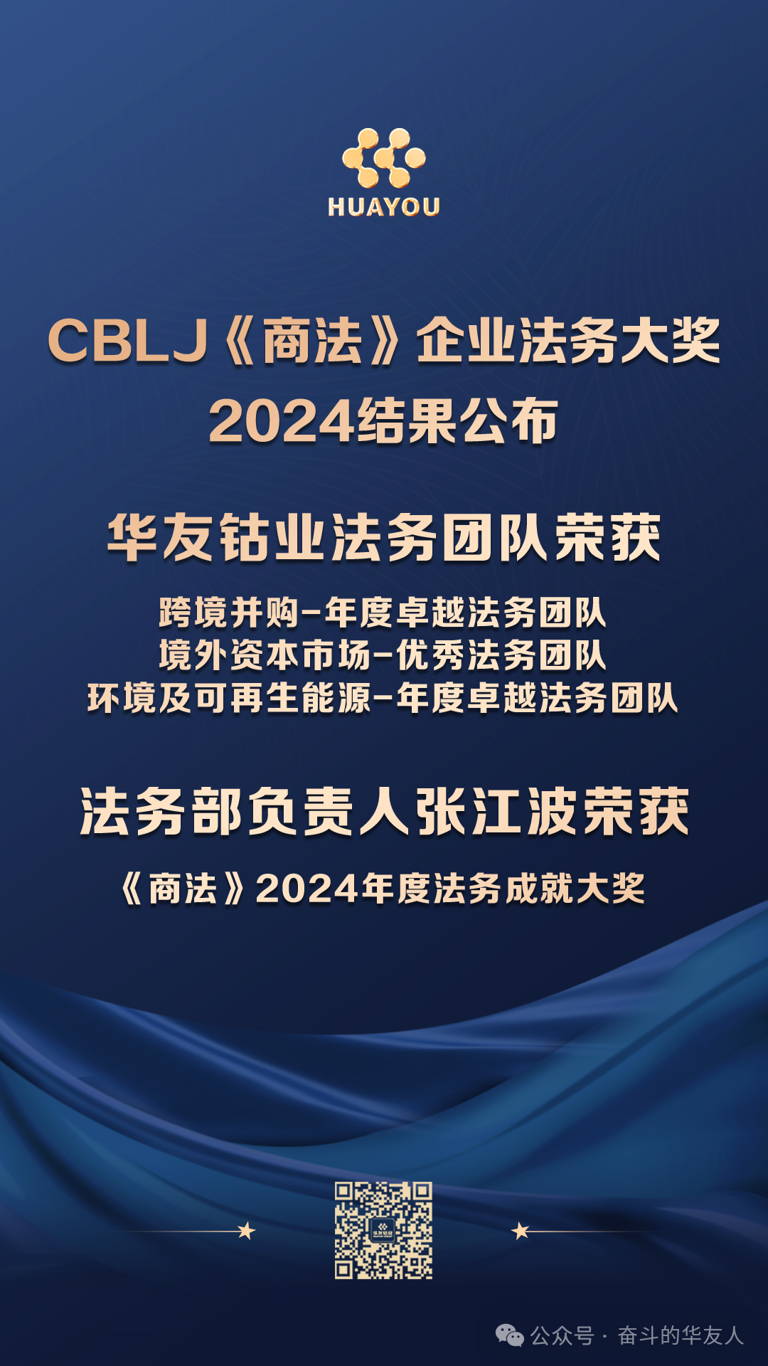 法務(wù)部部長張江波榮獲《商法》2024年度法務(wù)成就大獎,并憑借其在多個領(lǐng)域的優(yōu)異表現(xiàn),同時獲得境外資本市場-年度卓越法務(wù)、境內(nèi)合規(guī)-優(yōu)秀法務(wù)獎、跨境并購-年度卓越法務(wù)、環(huán)境及可再生能源-優(yōu)秀法務(wù)獎等共計五個獎項。