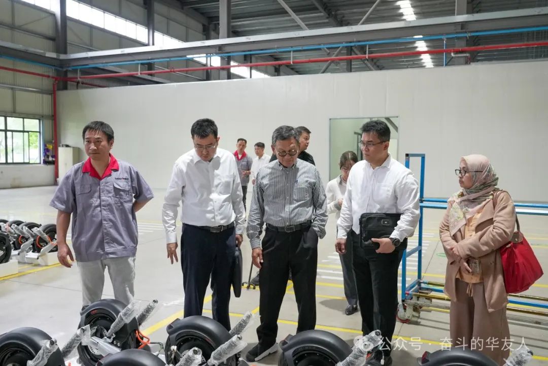 翌日,在陳董的陪同下,部長閣下還前往位于臺州的錢江摩托工廠、桐鄉的鑫可傳動公司參觀調研,了解企業發展歷程、市場環境、產品優勢特點及未來發展規劃等情況,部長閣下結合印尼產業發展實際與這些企業深入交流,共話合作機遇,共贏美好未來。