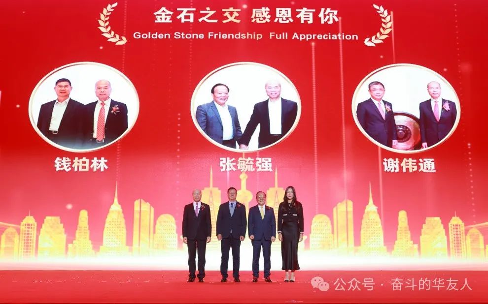在“華友創業三十周年金石之交 感恩有你”環節,陳雪華董事長向中匯(浙江)稅務師事務所有限公司財務總監錢柏林、大山集團董事長謝偉通、振石控股集團有限公司董事局主席張毓強贈牌,謝偉通進行視頻致辭,共同回顧和見證這段歷久彌堅的深情厚誼。