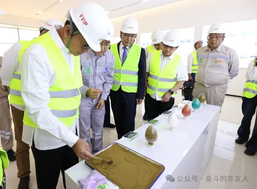 Rosan部長(zhǎng)一行先后參觀了華飛項(xiàng)目的控制中心、高壓酸浸車間及華能項(xiàng)目的展廳、質(zhì)量檢測(cè)中心、主控中心和生產(chǎn)車間,詳細(xì)了解了華友印尼緯達(dá)貝鋰電材料產(chǎn)業(yè)一體化綠色制造基地各項(xiàng)目的工藝流程、技術(shù)應(yīng)用、生產(chǎn)規(guī)模、產(chǎn)能產(chǎn)量等最新進(jìn)展以及ESG建設(shè)等方面的情況。