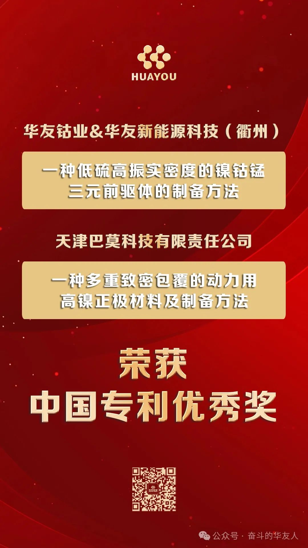 國家級榮譽+2!華友獲第25屆中國專利獎