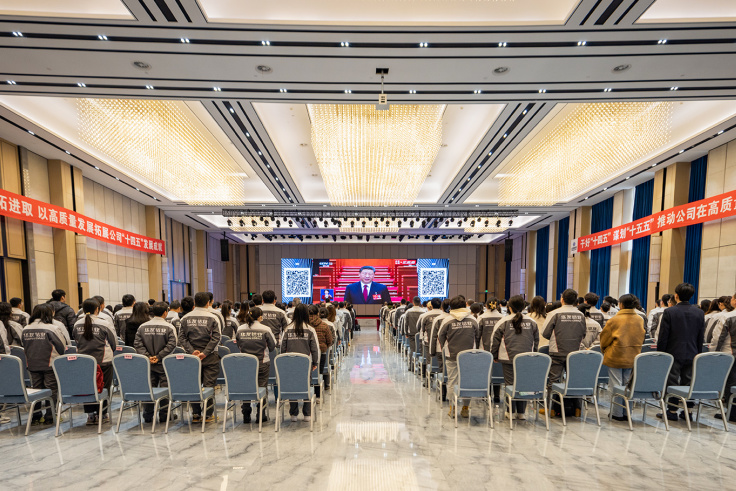 華友總部全體黨員及各職能部門部分干部員工集中收看開幕會,公司各產(chǎn)業(yè)集團各地子公司、單位均在各自駐地組織觀看、學(xué)習(xí)。國務(wù)院總理李強代表國務(wù)院向大會作政府工作報告,全面總結(jié)了過去一年的工作成就,并對2025年的經(jīng)濟社會發(fā)展提出了明確的目標(biāo)和規(guī)劃,報告中提到的科技創(chuàng)新、產(chǎn)業(yè)升級、民生保障等內(nèi)容,讓員工們深刻感受到國家發(fā)展的強勁動力和民生福祉的持續(xù)提升,也為華友高質(zhì)量發(fā)展指明航向。