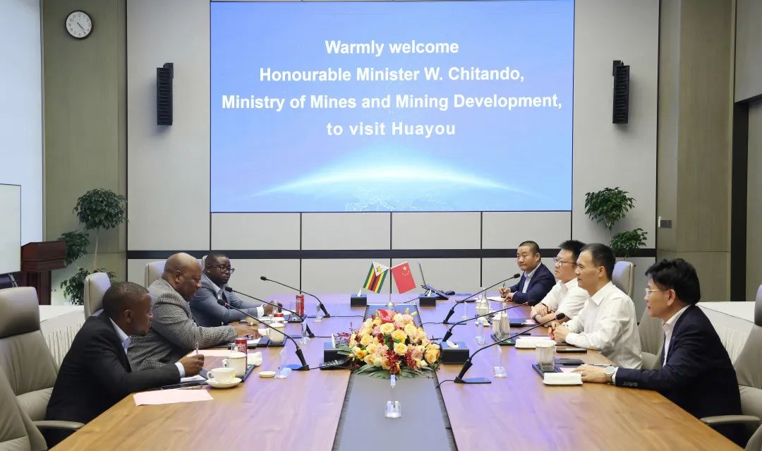 8月18日,津巴布韋礦業部部長威斯頓·奇坦多(Hon. Winston Chitando)一行蒞臨華友鈷業總部考察交流。公司董事長陳雪華熱情接待。