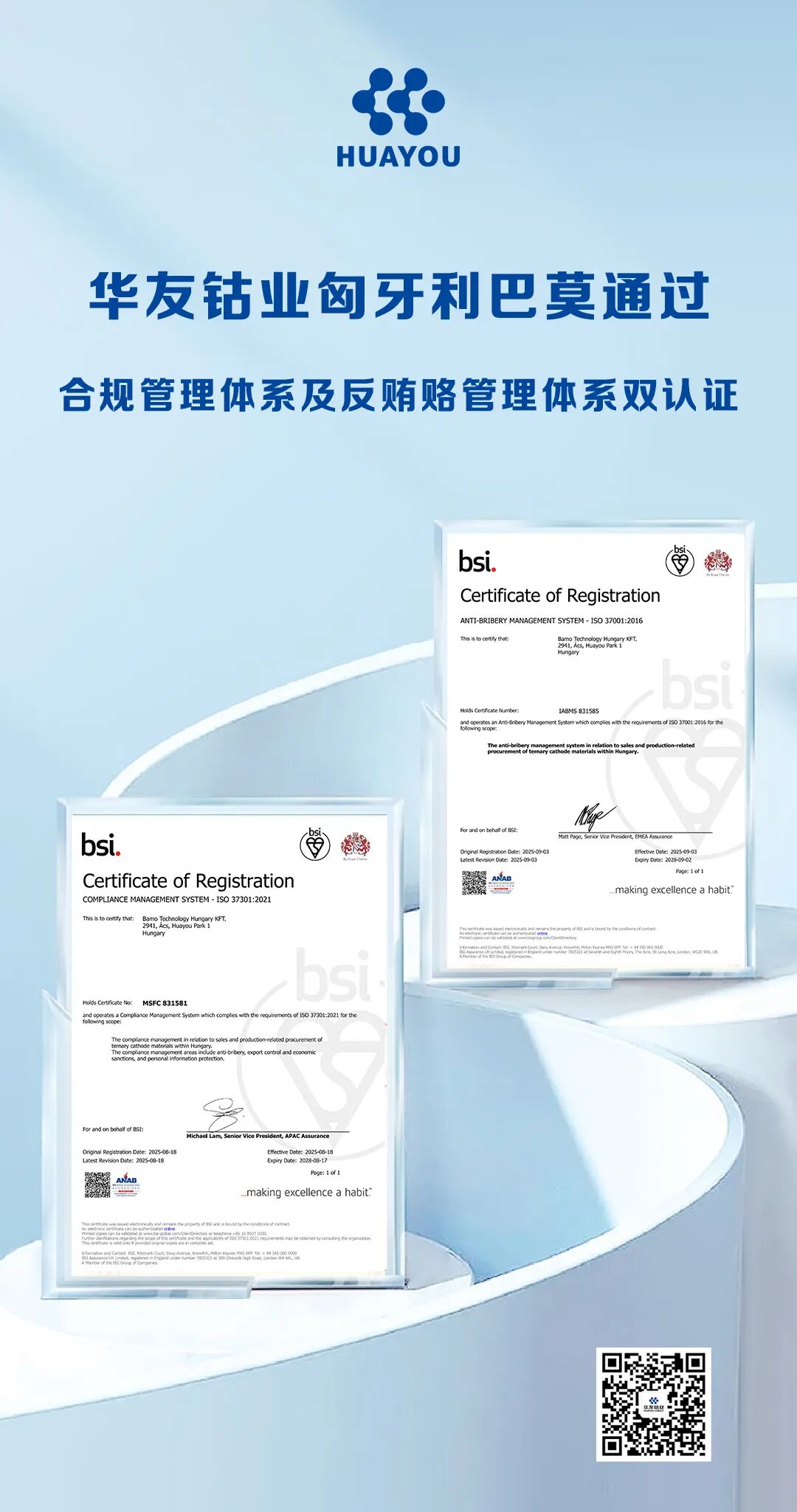 匈牙利首家 | 華友匈牙利巴莫通過合規管理體系和反賄賂管理體系雙認證