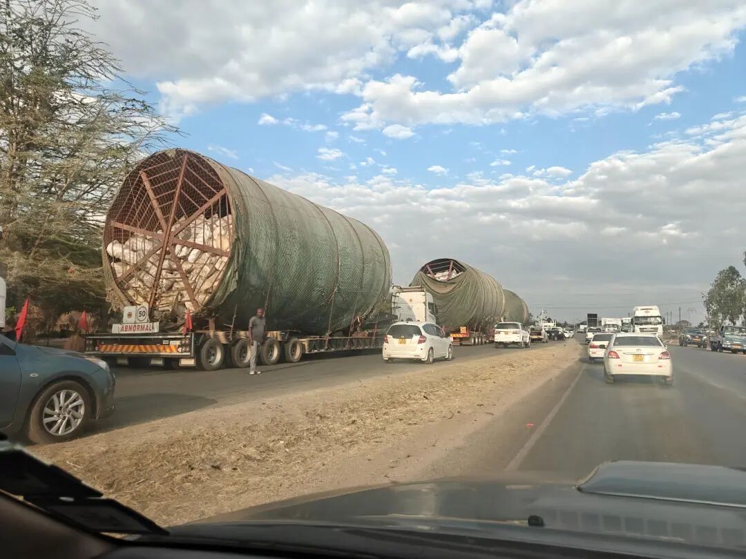 而這座“巨龍”的誕生之路,布滿荊棘。2025年6月24日,轉型窯首吊現場,起重指揮員的哨聲劃破長空。直徑5.6米、長達110米的轉型窯被切割成11段,歷經三個月的海上漂泊才運抵現場。“那艘船中途接到臨時任務,在海上多漂了兩個月。這種完全不可控的物流是我們項目建設中的‘頭號大敵’”鋰鹽項目部副總經理苦笑著搖頭,“我們每天都盯著船舶軌跡圖,心情就像坐過山車。”項目建設有著復雜的物流鏈路:從國內發出的貨物經過長途海運,經過南非德班港卸貨,完成清關后,還需再次在津巴邊界進行二次通關。此后,才是更為嚴峻的、長達1700公里的陸路運輸。“從德班到現場的這1700公里,每一步都充滿變數。”他補充道,語氣凝重,“車禍、超限運輸的審批、乃至當地復雜的人文環境,任何一環出現意外,都可能導致工期無限期延遲。”